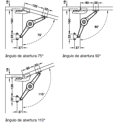 A partir da largura 600 mm usar 2 articuladores Duo