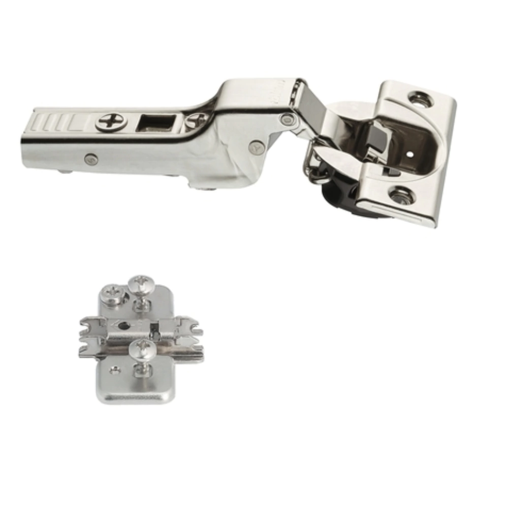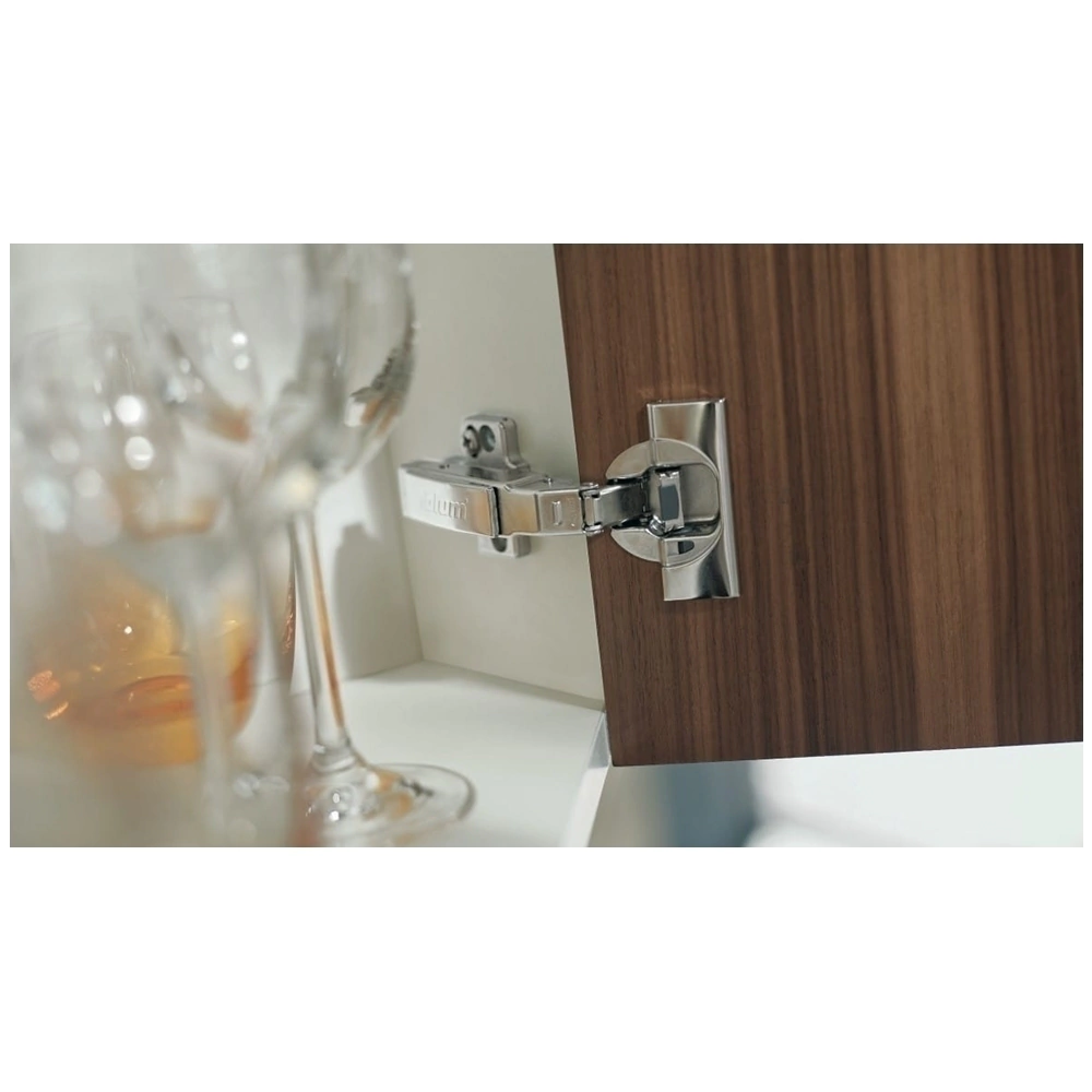 A dobradiça CLIP top BLUMOTION impressiona pela profundidade de furação menor do caneco de apenas 11.5 mm. Com isto, a dobradiça é ideal para portas de móveis já a partir de uma espessura de 15 mm.