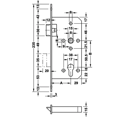 Fechadura para portas de passagem em Aço Inox 304 e corpo galvanezado a fogo.